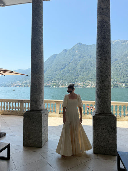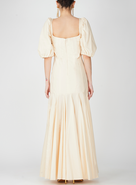 Embrace timeless romance in the Celine Dress. This maxi-length gown is crafted from crisp cotton and available in both a classic cream and a rich burgundy. It features a structured, fitted bodice with a square neckline that defines the figure, while the playful puff sleeves add a touch of whimsy. The dress flares out into a graceful, tiered skirt, creating a relaxed yet elegant silhouette that is perfect for any occasion.