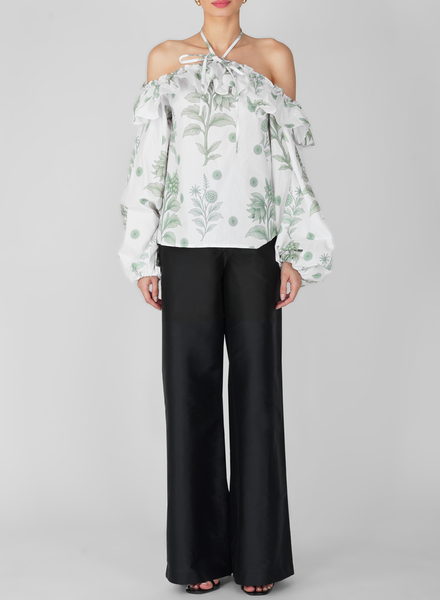This floral-print Doria top brings a romantic and bohemian feel to any look. Made from lightweight cotton, it features an elegant halter-neck tie and a ruffled, off-the-shoulder neckline that creates a chic, cold-shoulder effect. The long balloon sleeves add a touch of whimsical volume, while the shirred waist provides a comfortable and flattering fit. It's a versatile piece that pairs beautifully with a matching skirt or your favorite denim.